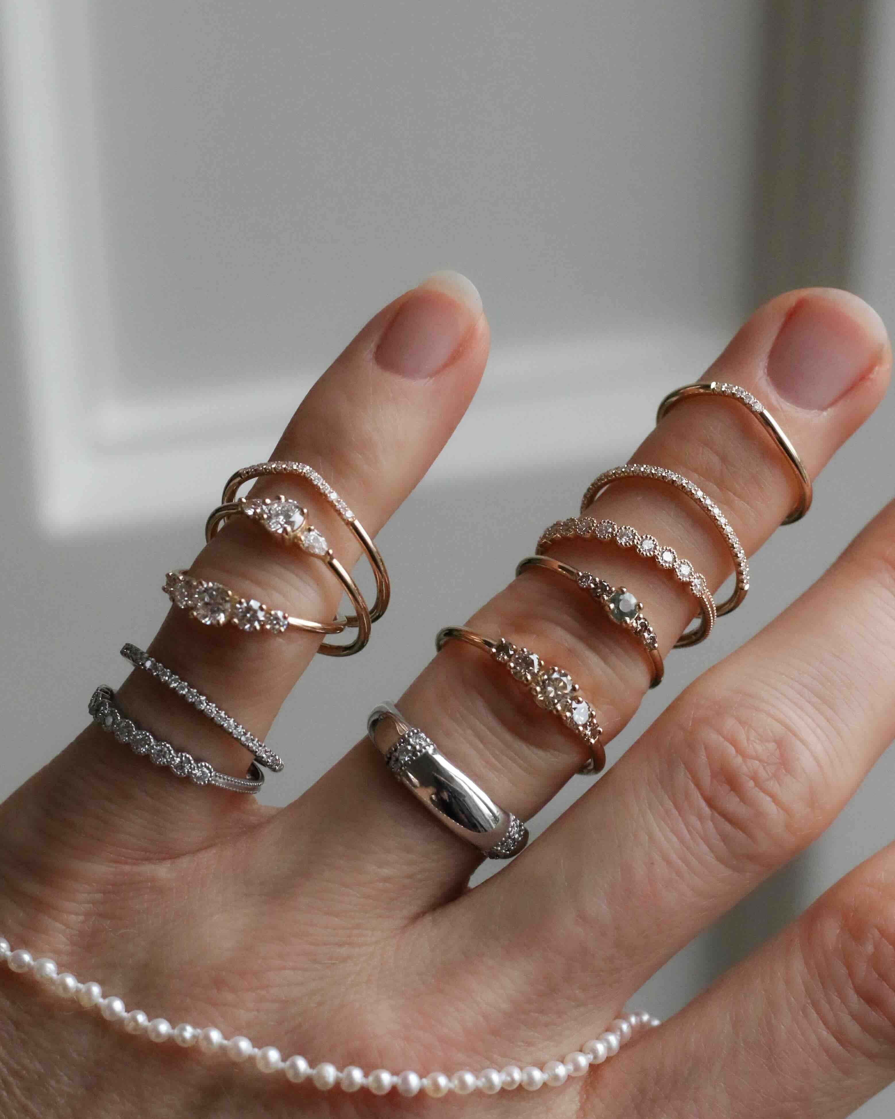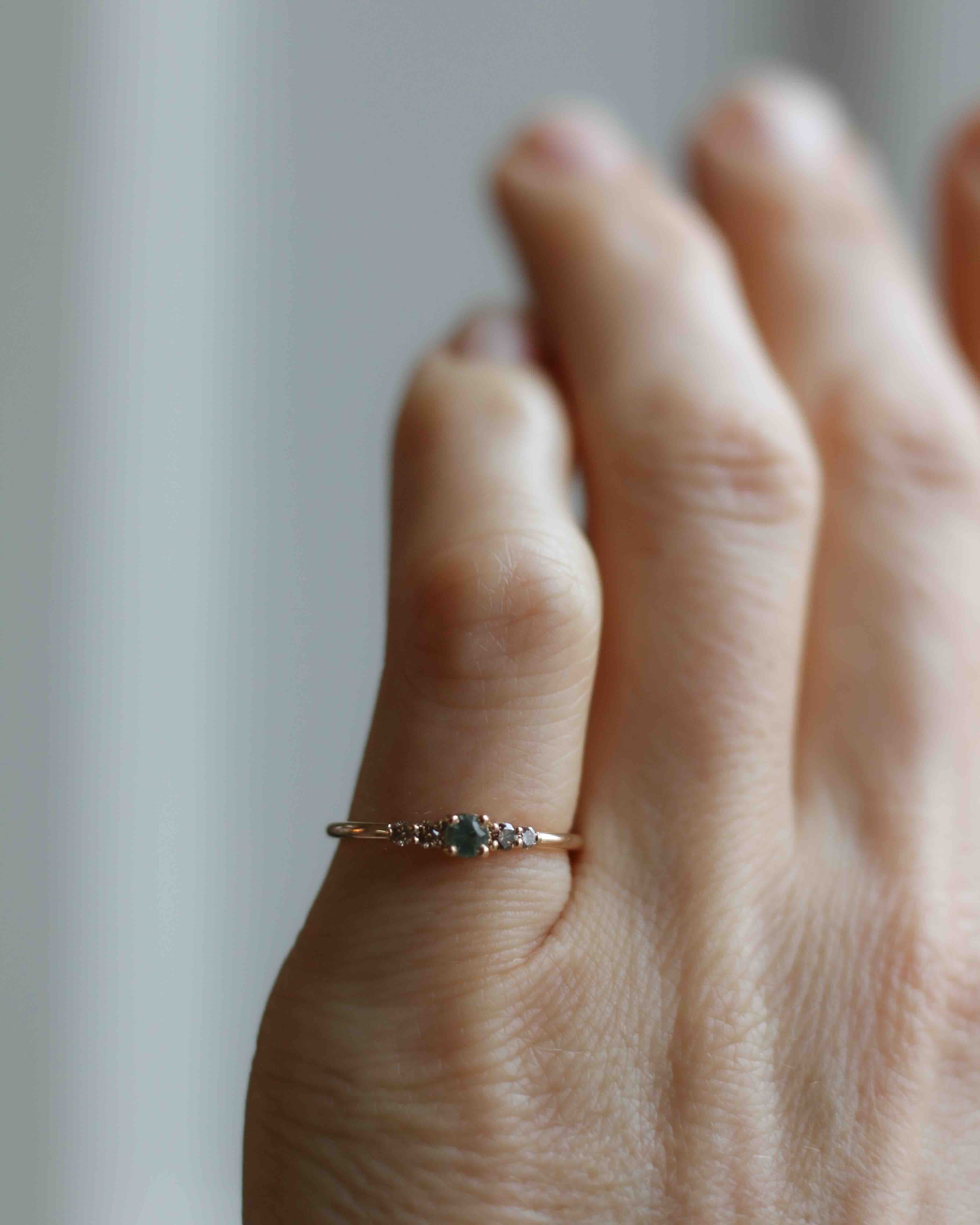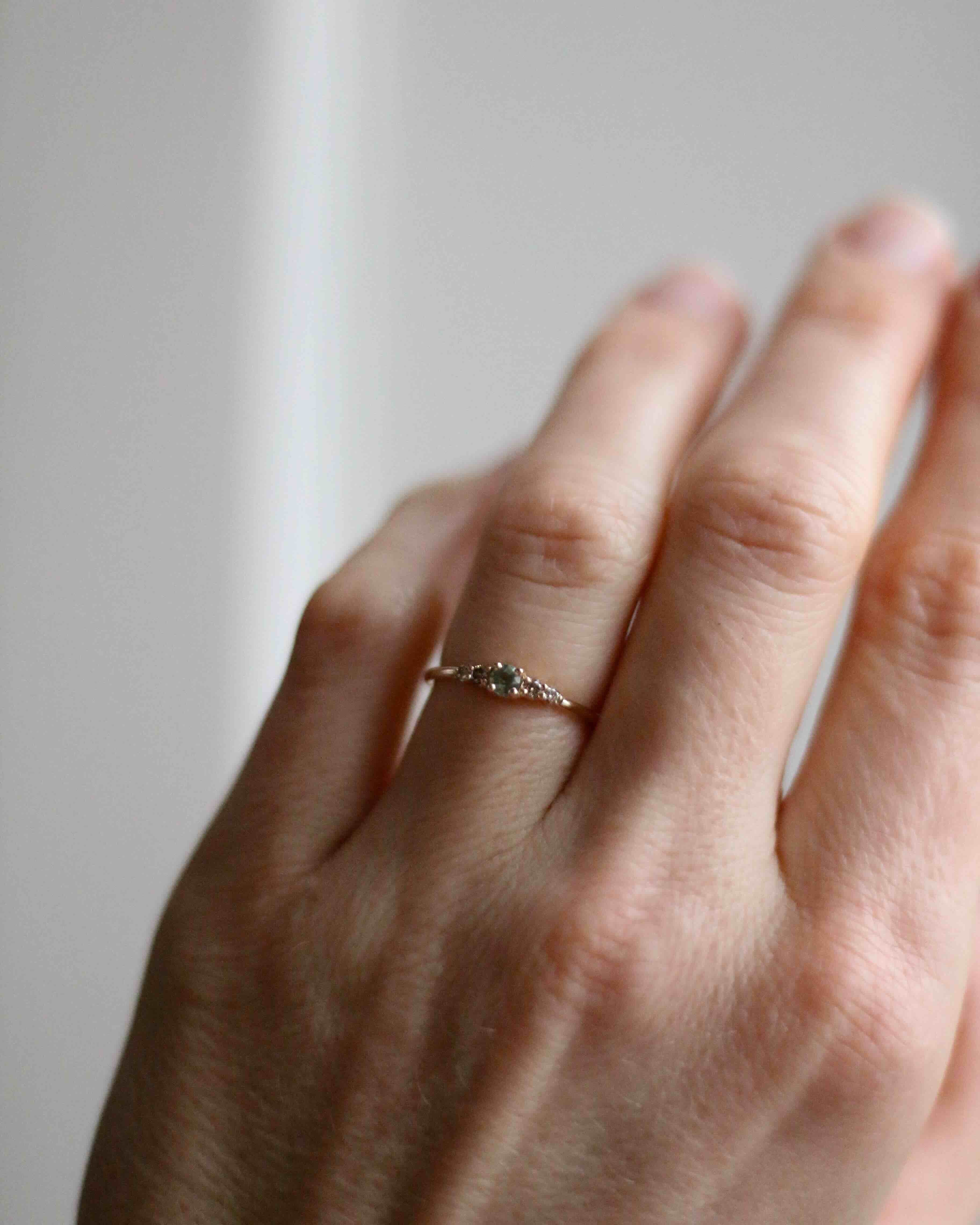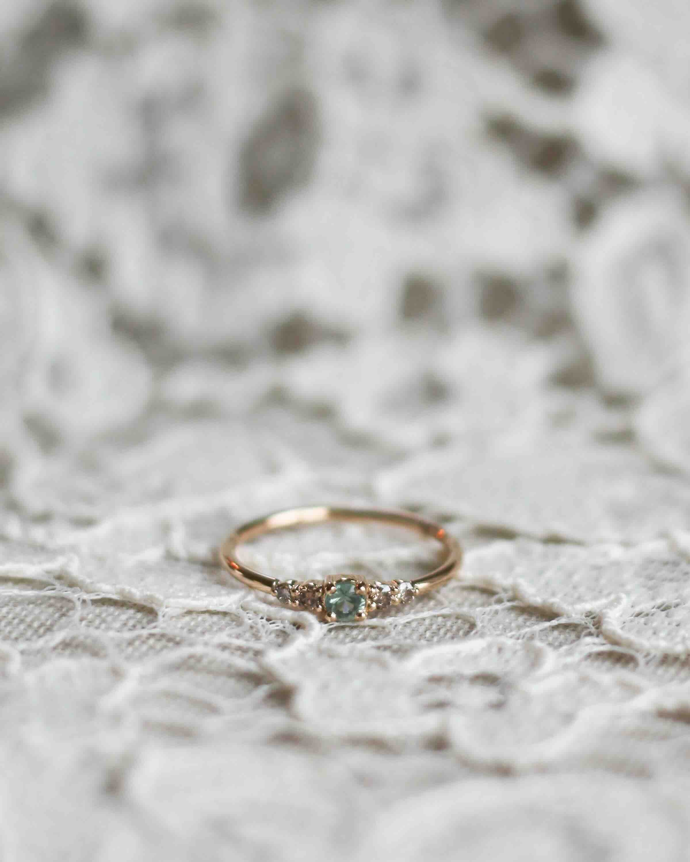Många som provar Mini Elise Ring i vårt showroom upplever att den sitter väldigt fint på fingret och att balansen mellan de fem stenarna är så harmonisk.
