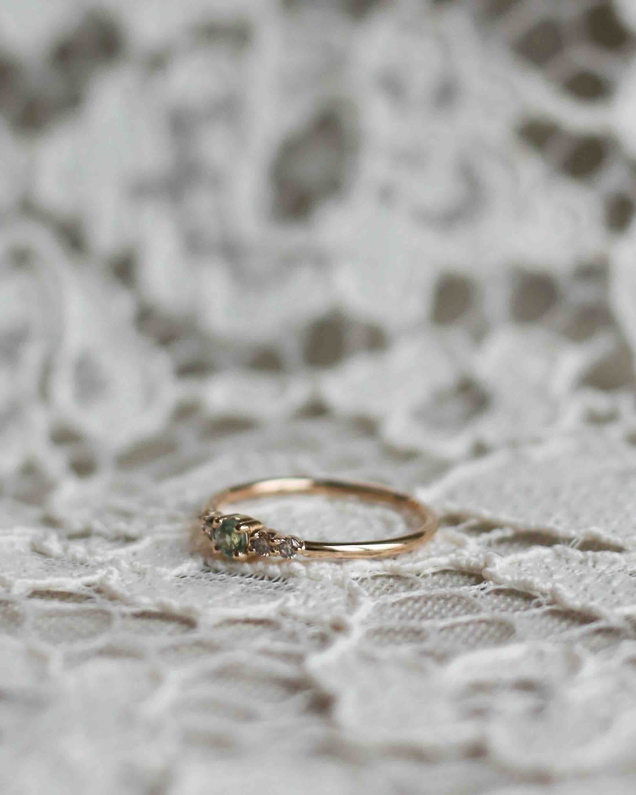 Unik! Mini Elise Ring med Olivgrön Safir och Chokladdiamanter