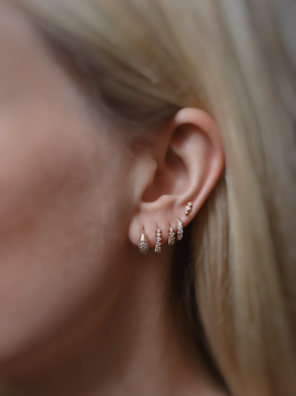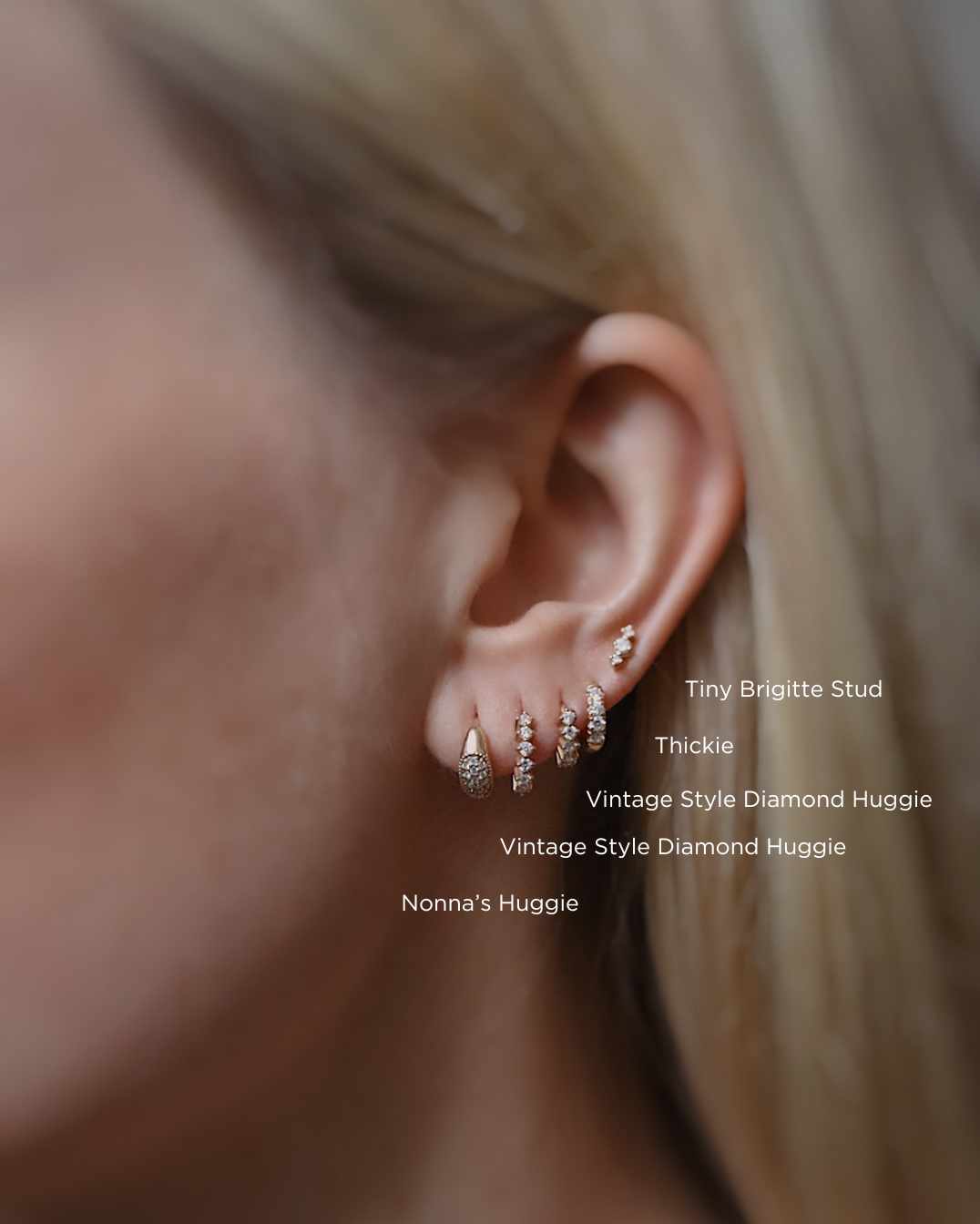 Huggie = en minihoop som är så liten att den "kramar" örat. De stängs med ett klick och är underbart bekväma! De blir ofta de örhängena du aldrig tar av.
