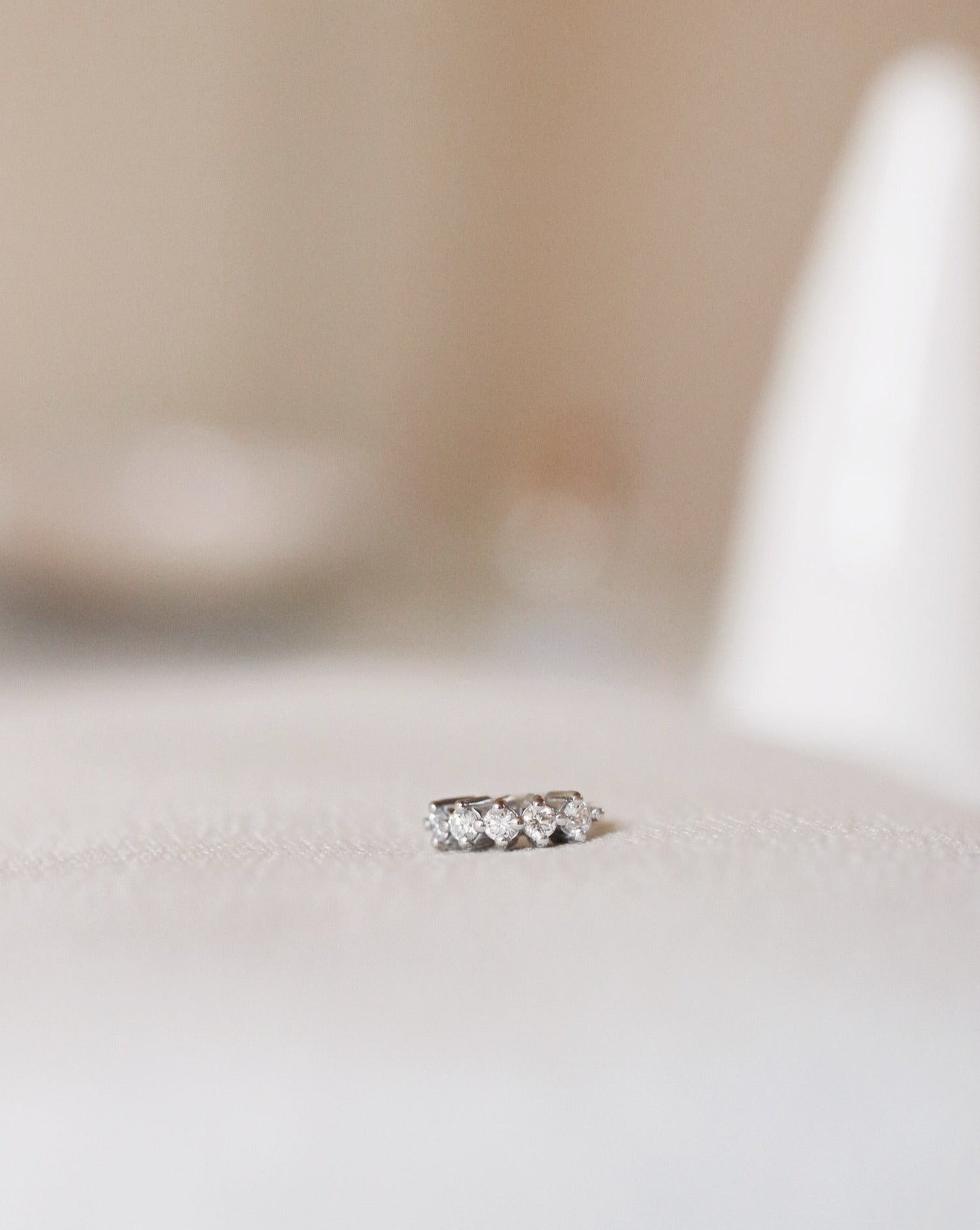 Storlek 5 och 6 mm: Fem 0.02 CT diamanter och en 0.005 CT diamant på baksidan i kvalitet TWVS (Mycket Hög Kvalitet) Total caratvikt: 0.105 CT