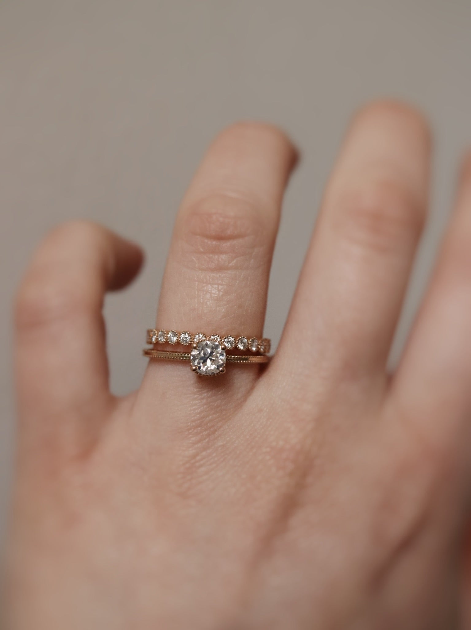 Välj ditt önskade spann av caratstorlek. Cecilia handplockar din diamant för dess unika egenskaper, och gör noga avvägningar mellan diamantens caratstorlek, slipningens kvalitet och skimmer, diamantens färg och inneslutningar.