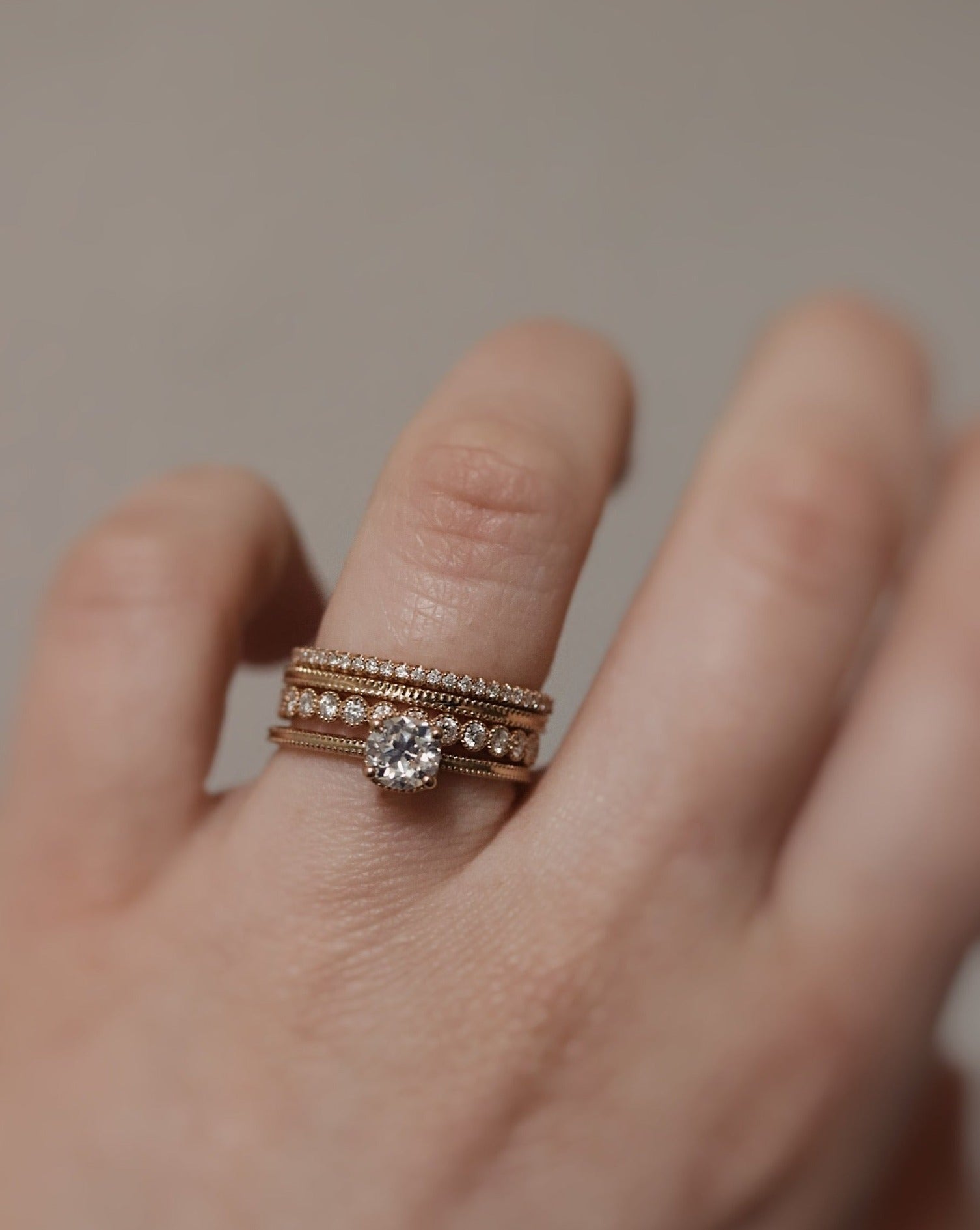 Vi handplockar varje antikdiamant och väljer ut dem för deras unika egenskaper. Vi gör avvägningar mellan caratstorlek, slipningens kvalitet och skimmer, diamantens färg och inneslutningar. Det Cecilia letar efter är diamanterna som har "det"!